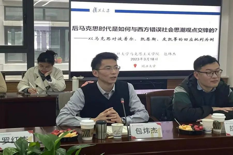 复旦大学kaiyun官方网站入口包炜杰讲师分享的主题是“后马克思时代是如何与西方错误社会思潮观点交锋的?——以马克思对波普尔、凯恩斯、皮凯蒂的回应批判为例”。包老师以“历史规律”、“经济危机”和“共同富裕”为关键词,分析了波普尔、凯恩斯、皮凯蒂如何在这些方面歪曲了马克思的诸多重要思想,最后强调要在“整体性”中坚持和发展马克思主义。