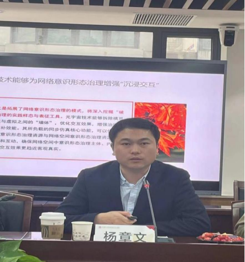 上海大学kaiyun官方网站入口杨章文讲师分享的主题是“元宇宙技术嵌入意识形态治理研究”。杨老师指出元宇宙技术业已成为影响网络意识形态治理的重要因素,元宇宙技术的嵌入对网络意识形态治理产生的正向效应,同时也带来一定负向效应,所以需要积极探索弥合负向效应的恰切之道。