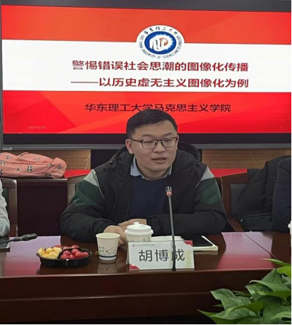 华东理工大学kaiyun官方网站入口胡博成讲师分享的主题是“警惕错误社会思潮的图像化传播——以历史虚无主义图像化为例”。胡老师指出,历史虚无主义的叙事方式逐步转向了图像。这种转向是它自身发展规律、图像化可视化媒介发展以及主流意识形态建设共同作用的结果,为应对历史虚无主义的图像化转向,应当建立健全符合主流意识形态建设的图像话语体系、图像治理体制等。