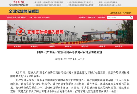 该项目走进基层,接触群众,得到了“大美陵城”、“同济理论宣讲”等微信公众号的推送和转载,同时也得到了共产党员全国党建网、中国大学生在线、齐鲁网·闪电新闻、宣城日报社的报道,活动影响力得到进一步提升。