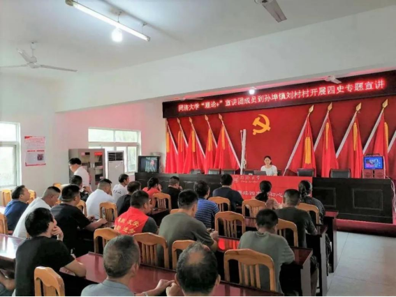 团队成员扎根专业实践,反复打磨课件,采取了线上和线下相结合的方式进行宣讲,如高秋月同学受到曲阜市陵城镇团委邀请,前往陵城镇人民政府、陵城镇鲍庄村进行了“四史”专题宣讲;朱佳佳同学也为宣城市孙埠镇带来了关于“井冈山精神”的宣讲;而宋淑苇同学则是通过线上的腾讯会议,带领上海市虹口区嘉兴街道党支部的党员们重温了黄浦码头的前世今生。