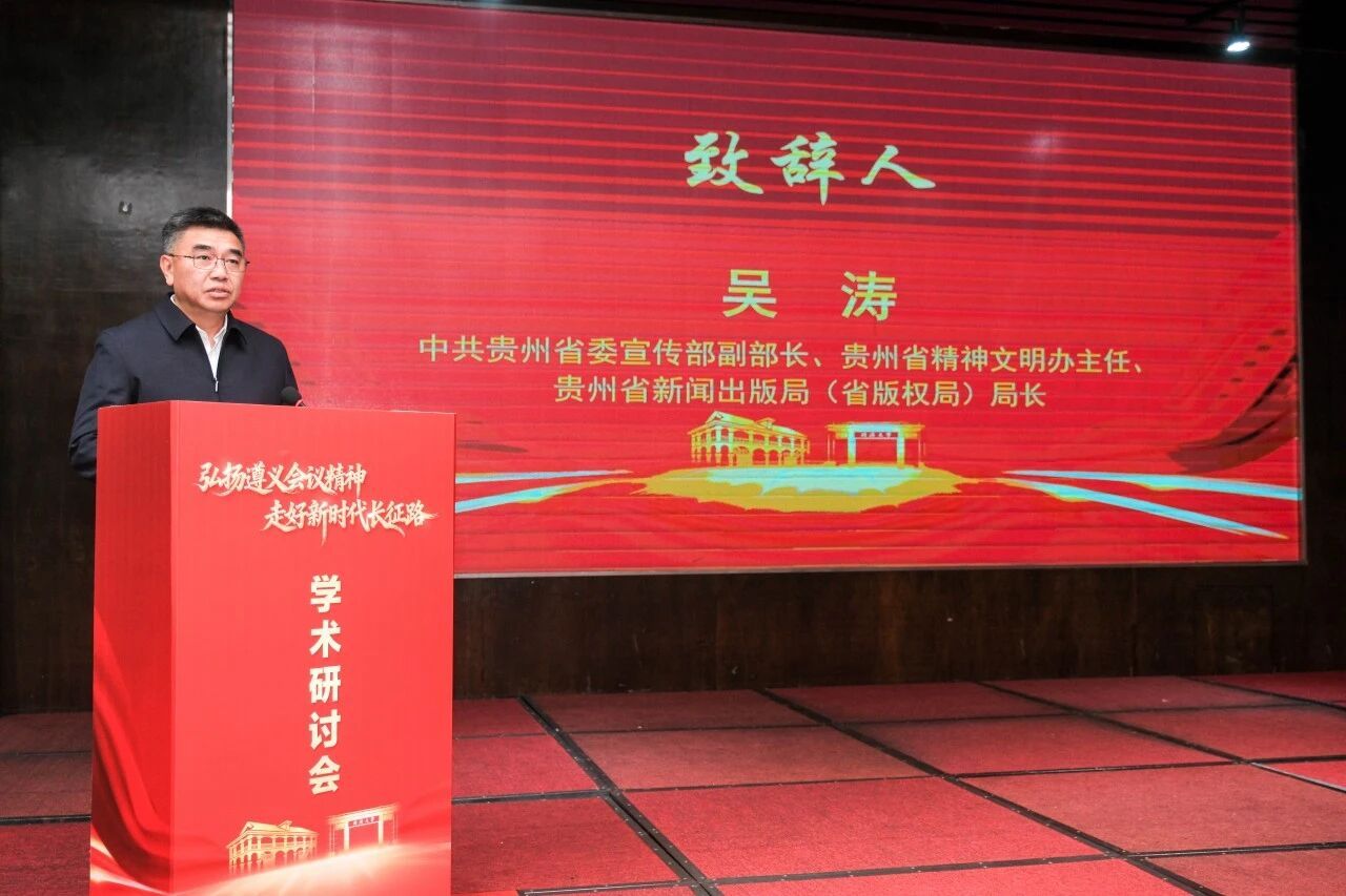 中共贵州省委宣传部副部长、贵州省精神文明办主任、贵州省新闻出版局(省版权局)局长吴涛在致辞中指出,此次学术研讨会既是深入贯彻落实习近平总书记重要指示精神的具体行动,更是研究阐释长征精神和遵义会议精神时代价值,为强国复兴伟业凝心聚力的重要举措。
